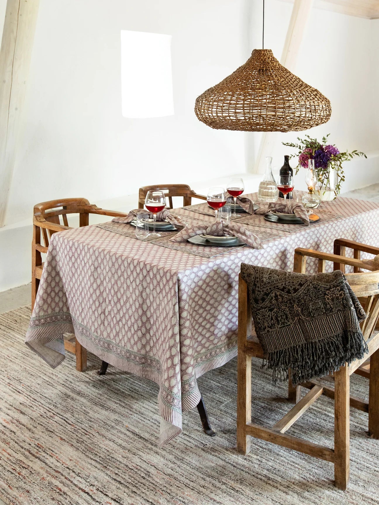 Denne vakre linduken fra Chamois kombinerer tradisjonelt håndverk med et rikt og levende uttrykk. Det florale mønsteret er håndtrykket med klassisk indisk block print-teknikk, noe som gjør hver duk helt unik. Små variasjoner i trykket gir duken karakter og sjel, et ekte håndverksprodukt som tilfører borddekkingen varme og personlighet.