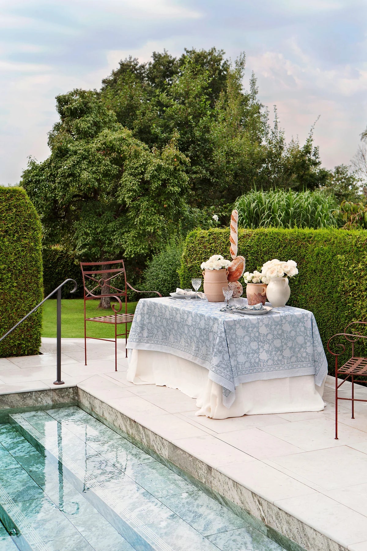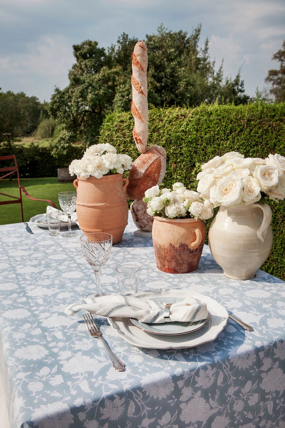 Den myke blå tonen i Dusty Blue tilfører eleganse og varme til borddekkingen, og passer like godt til hverdagsbruk som til festlige anledninger. Duken er laget av bomull av høy kvalitet, med en fin struktur og god fall.
