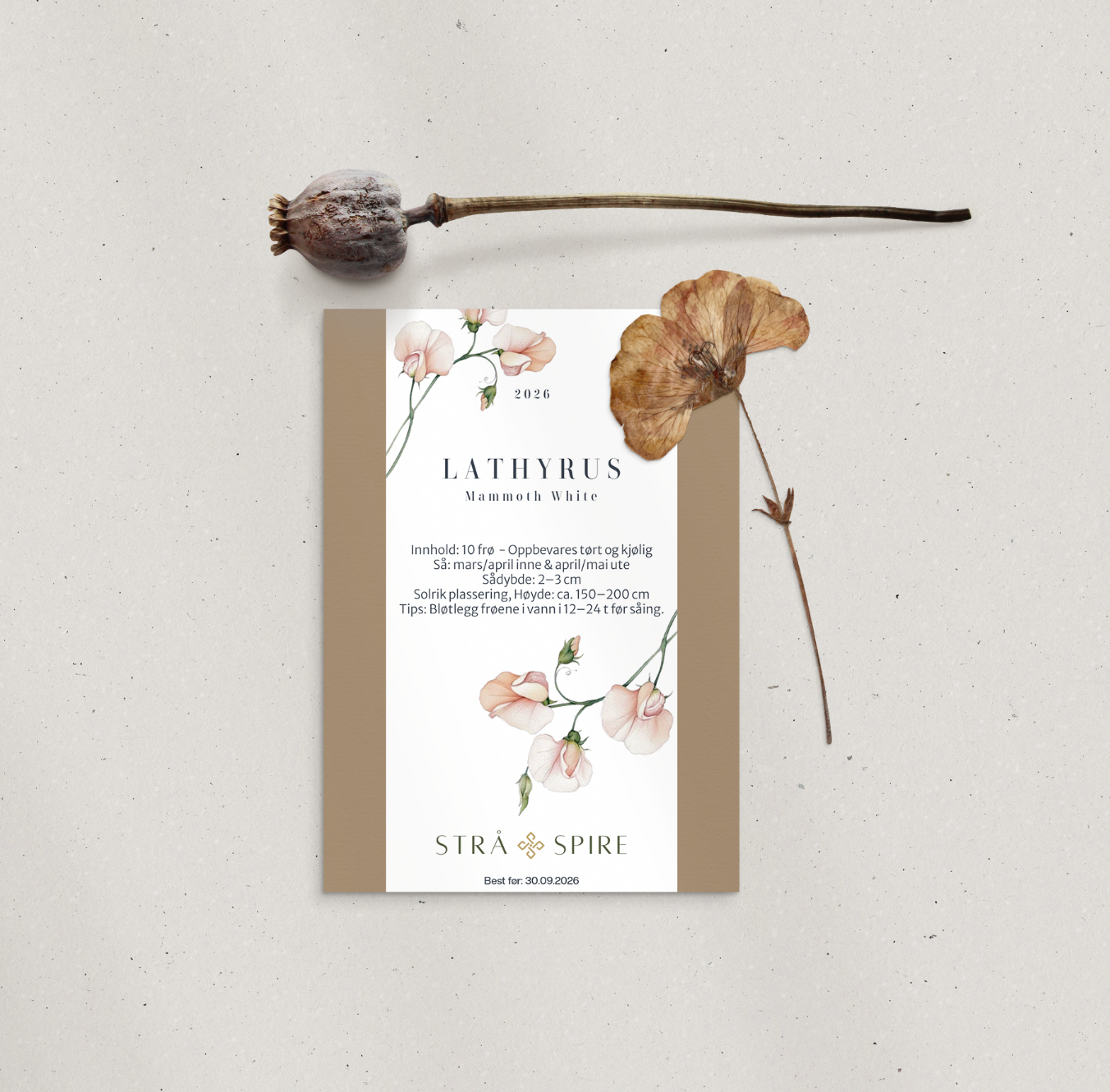 ‘Mammoth White’ er en tidløs erteblomst med rene, hvite blomster og et lett og luftig uttrykk. Den passer perfekt i romantiske hager, bryllupsbuketter og minimalistiske arrangementer.