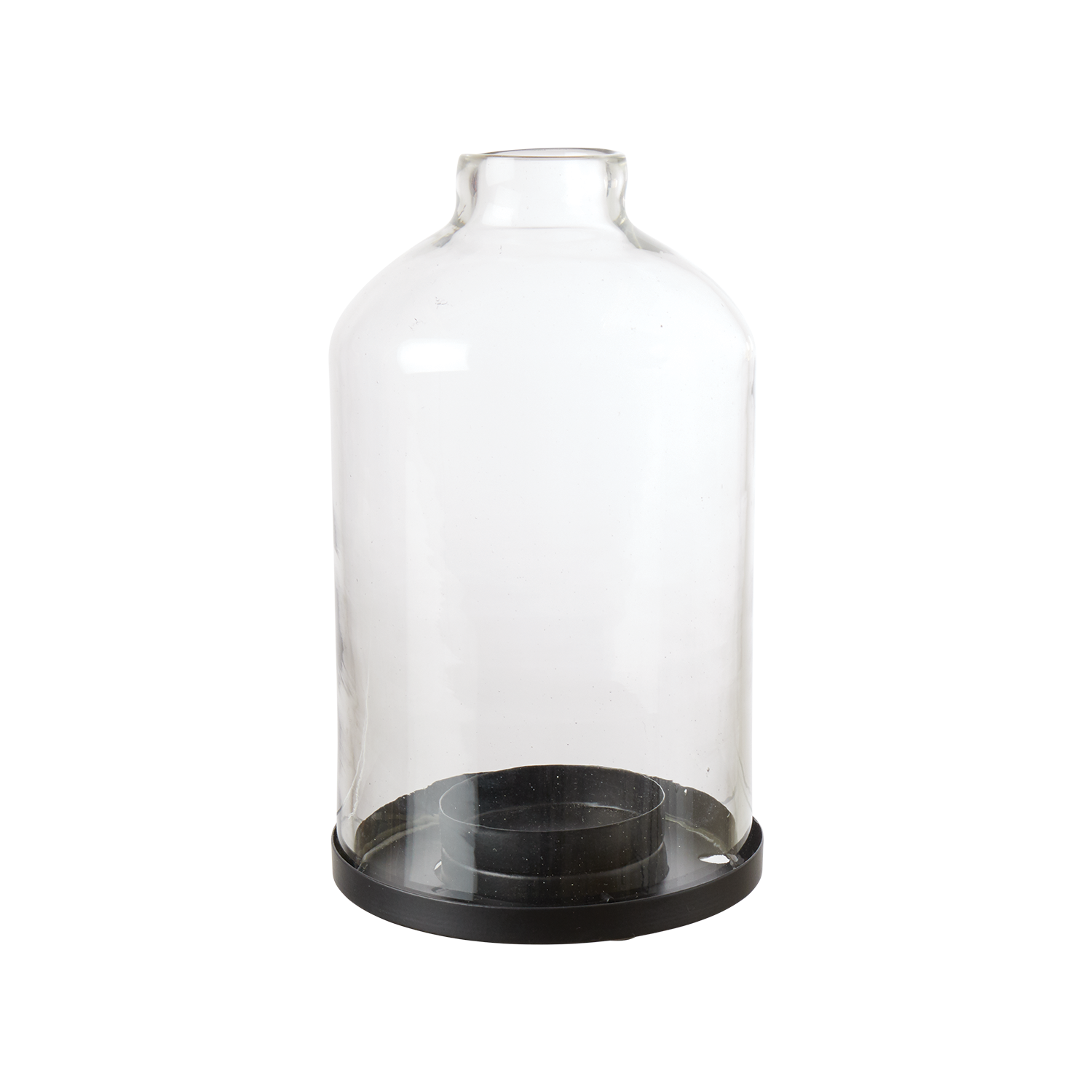 En elegant og tidløs glasslykt som passer perfekt til både borddekking, uteplassen, vinterhage og stille kroker inne. Det klare glasset kombineres med en minimalistisk svart metallbase som gir et moderne og stilrent uttrykk.