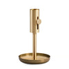 Lysestaken er laget i messing, med en diskret messingknopp som gir en varm kontrast og en tydelig funksjon. Knoppen gjør det enkelt å løsne stearinrester og sette inn nye lys, mens den gjennomtenkte basen fanger opp smeltet stearin og beskytter underlaget.
