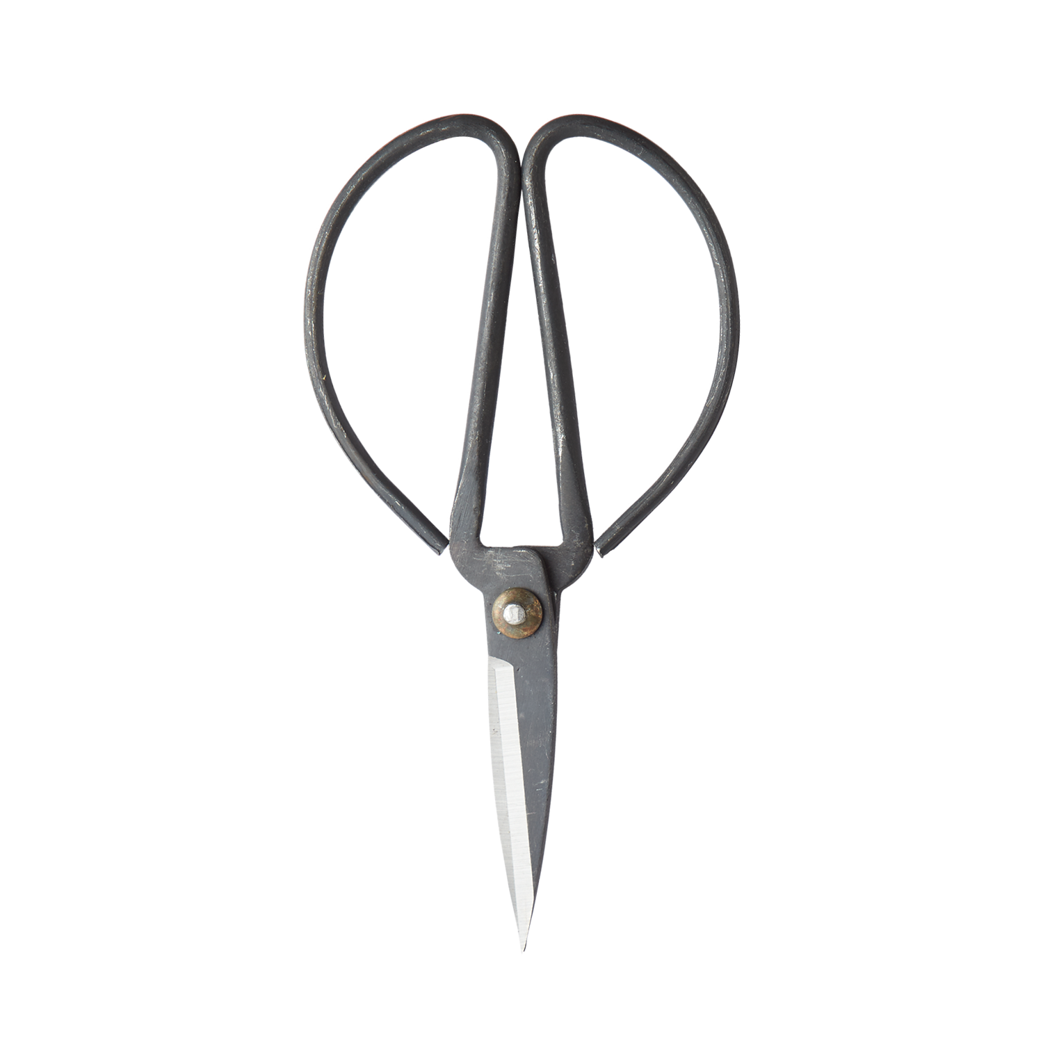 En stilren og funksjonell håndsaks i tradisjonell japansk stil, perfekt for hagearbeid, blomsterklipping, gaveinnpakking eller små prosjekter inne. Saksen er laget av støpejern, noe som gir den både tyngde, karakter og lang levetid. Bladene er skarpe og presise, og håndtakets åpne form gir et godt grep.
