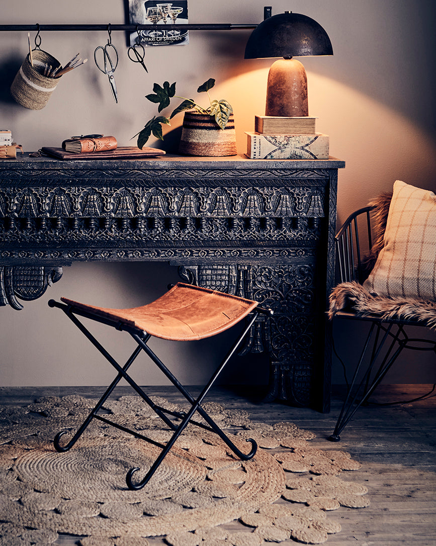 Denne saksen patineres naturlig ved fukt og bruk, noe som gir den et vakkert, rustikt uttrykk over tid, akkurat slik vi liker det i drivhus og kreative verksteder.