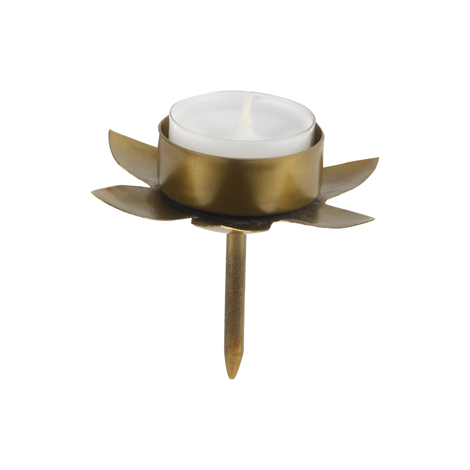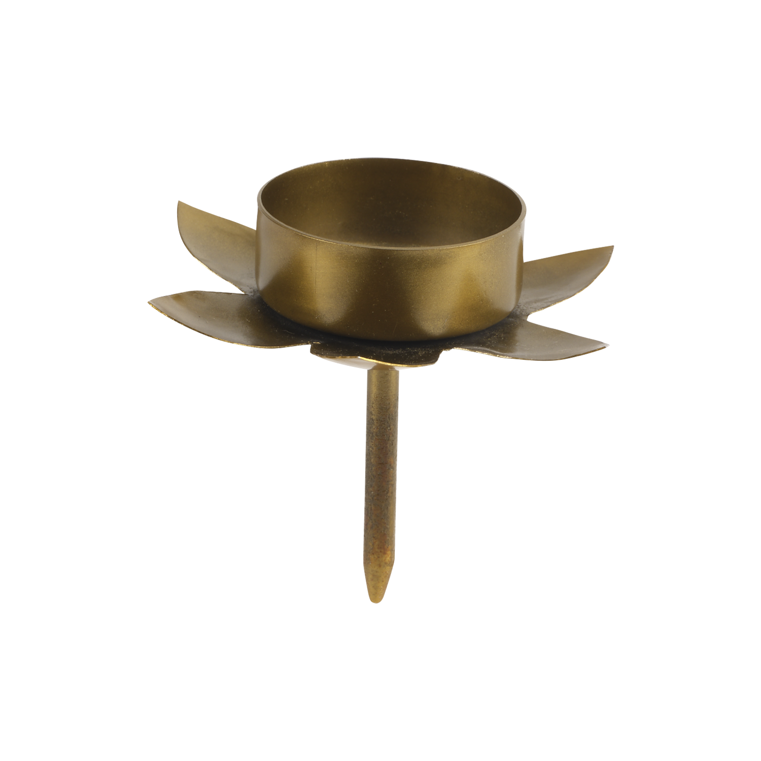 En dekorativ liten telysholder med bladbase. Perfekt til borddekking, hyllepynt eller små dekorgrupper.