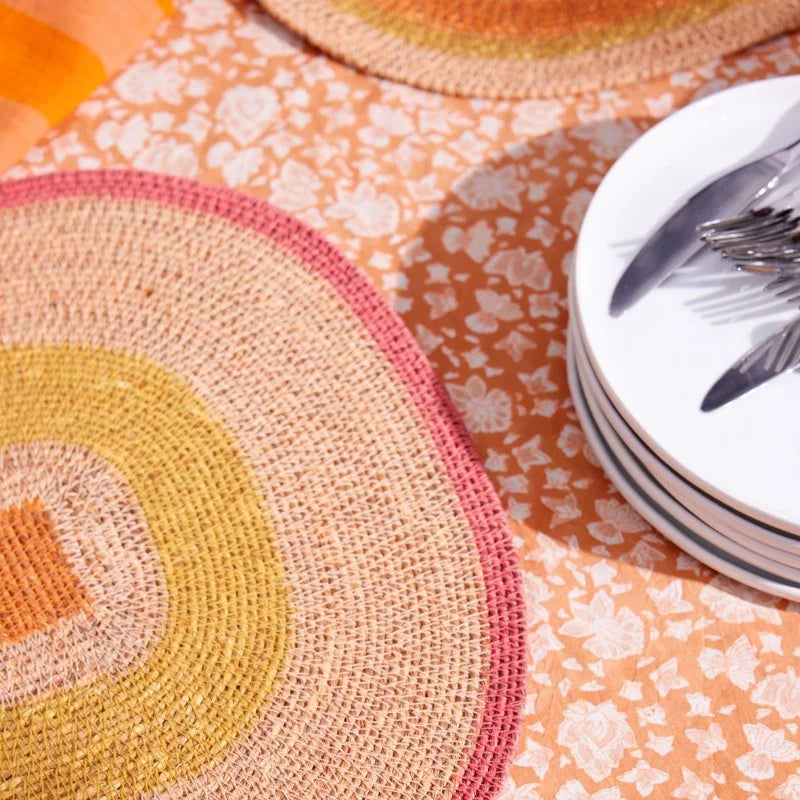 Fargepalettene er nøye valgt og tilpasset med den karakteristiske Bonheur du Jour-touchen, slik at de skaper varme og liv rundt sommerbordet, enten du dekker til familie, venner eller hagefest. Originaliteten gjenspeiles i de vakkert dekorerte kantene som rammer inn hver duk.
