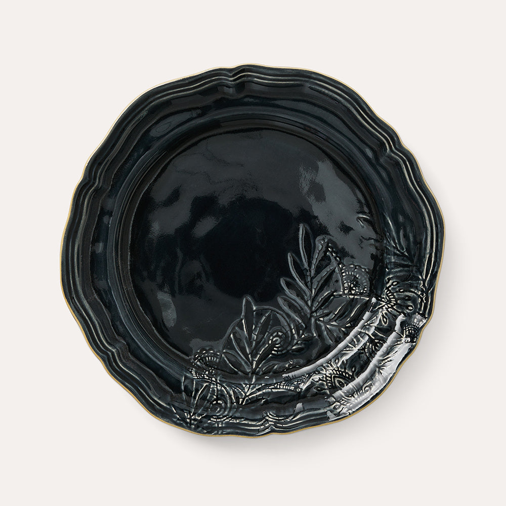 Det sirlige mønsteret fra Arabesque-serien gir balanse mellom det dekorative og det moderne, og gjør tallerkenen like vakker alene som i kombinasjon med lysere farger.