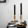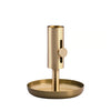 Lysestaken er laget i messing, med en liten messingknapp som både gir et varmt visuelt kontrapunkt og har en praktisk funksjon. Knappen gjør det enkelt å fjerne stearinrester og sette inn nye lys – en liten detalj som gjør stor forskjell i bruk.