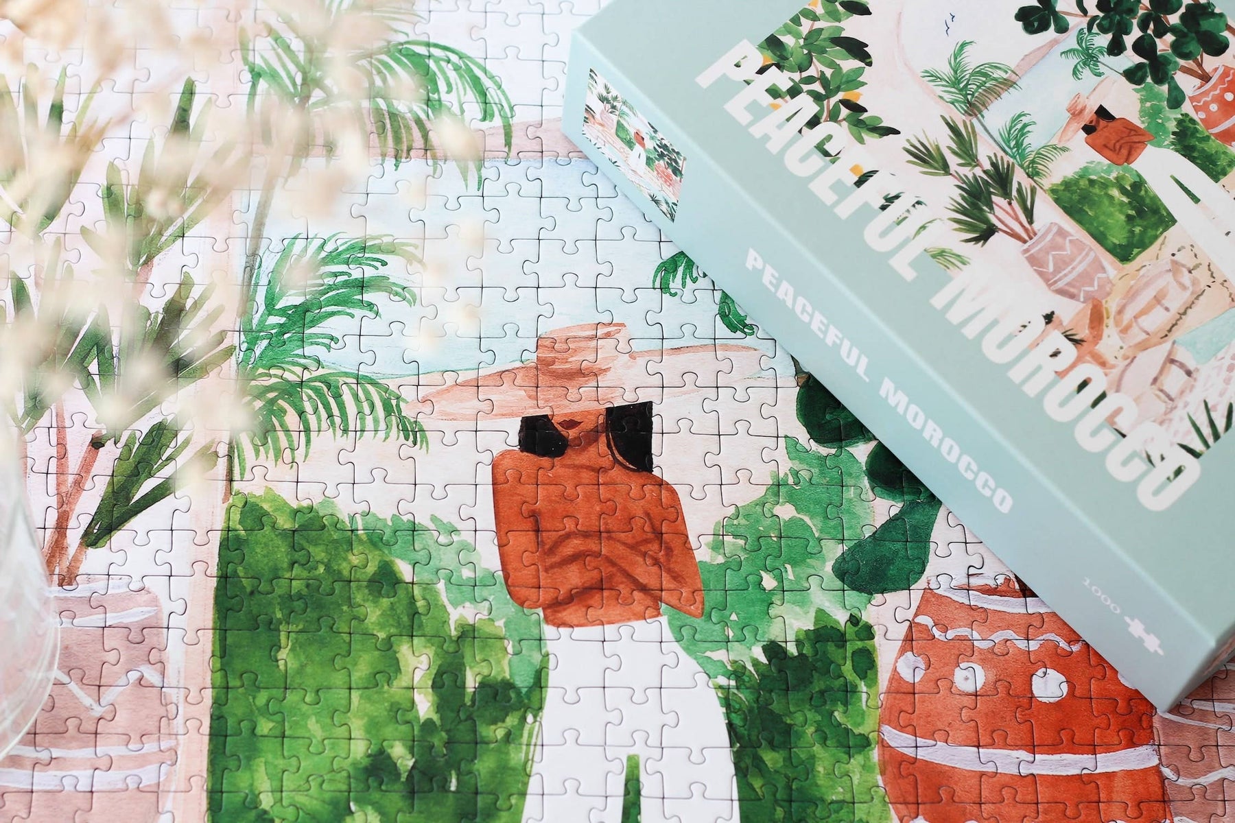 Et stemningsfullt puslespill med 1000 brikker, illustrert av Sabina Fenn. Motivene hennes kjennetegnes av varme, ro og et feminint, luksuriøst uttrykk – skapt for å bringe harmoni og skjønnhet inn i hjemmet.