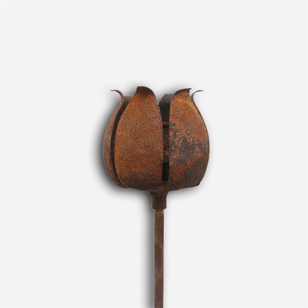 Et lite kunstverk i seg selv. Lykten er laget i rustfarget metall og passer perfekt til telys. Plasser den i en utepotte, blomsterbed eller ved inngangspartiet for å skape en varm og stemningsfull atmosfære hele året.